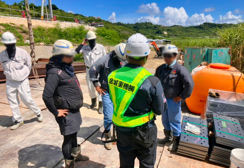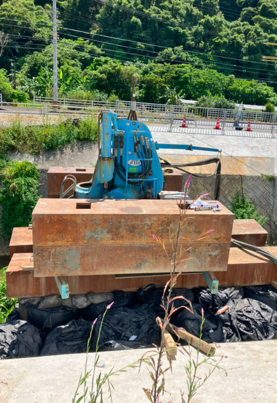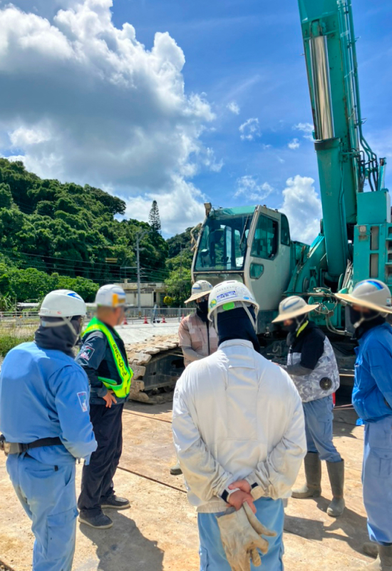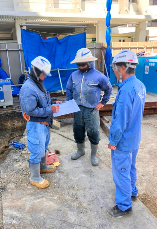 - 狭い現場かつ、施工現場が川なので高低差がある為、安全作業を遵守するよう指示。