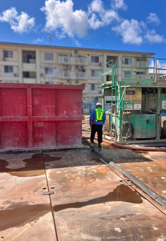 - 近隣に泥等、飛散災害の無いよう注意した。
