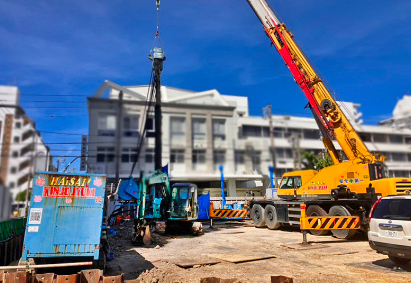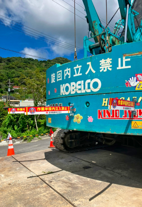 - 現場がかなり狭いため、重機の配置計画等を行う事。